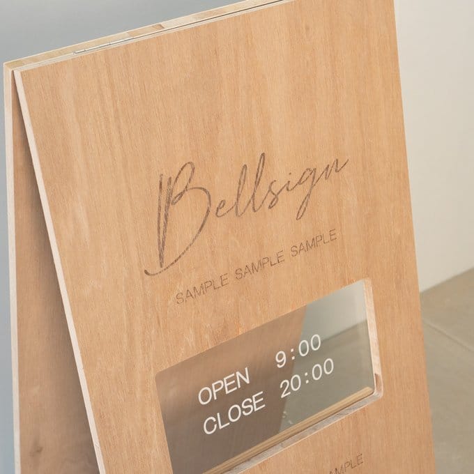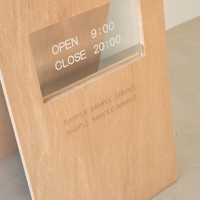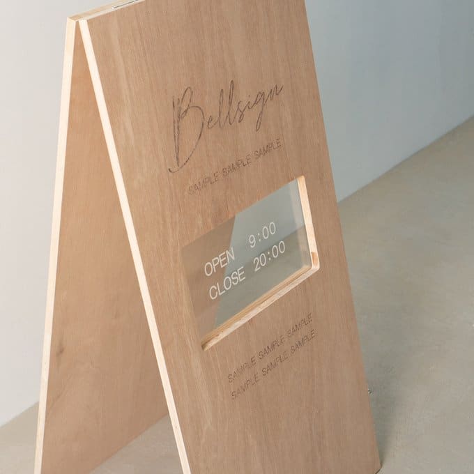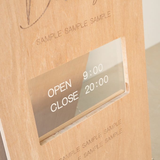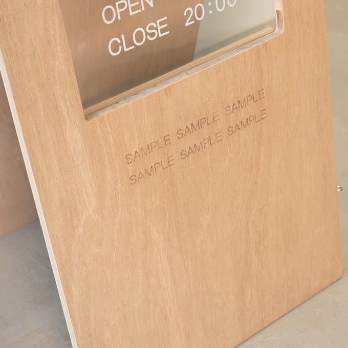 ショップ名やロゴはもちろん、営業時間やQRコード、ショップのストーリーも。レーザー加工機を使った精密な刻印で、細かい情報も美しく表現可能。文字だけでなくイラストやアイコンも彫刻できるので、視認性とデザイン性を兼ね備えたオリジナルA看板が完成します。