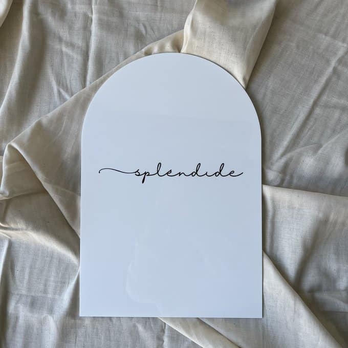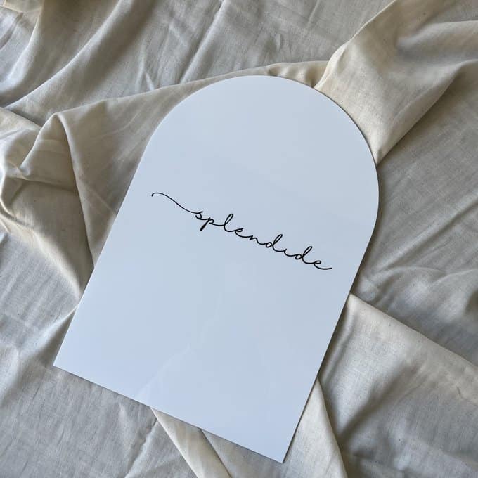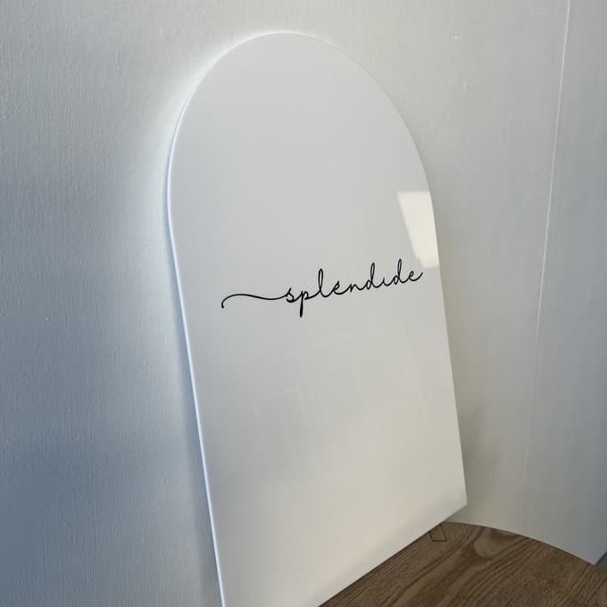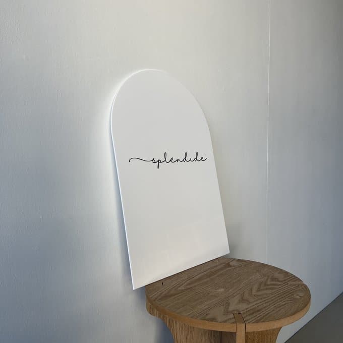 アーチ型のやさしいフォルムと、ホワイトアクリルの清潔感が融合したサインプレート。見る人に親しみを与えつつ、情報をしっかりと伝えてくれる、シンプルで上品なデザインが魅力のアイテムです。レジ横やカフェテーブル、展示棚などにさりげなく置くだけで、空間に整った印象を添えることができます。